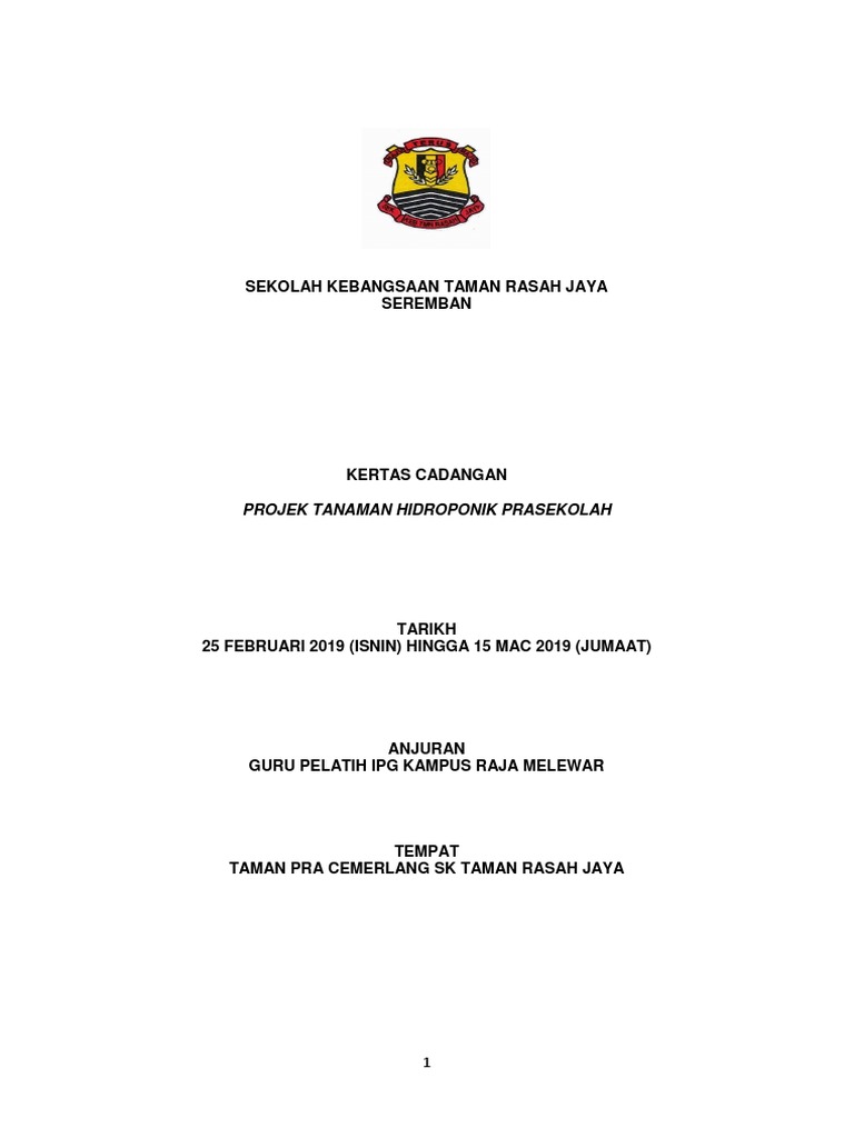 Kertas Kerja Projek Tanaman Hidroponik Pdf